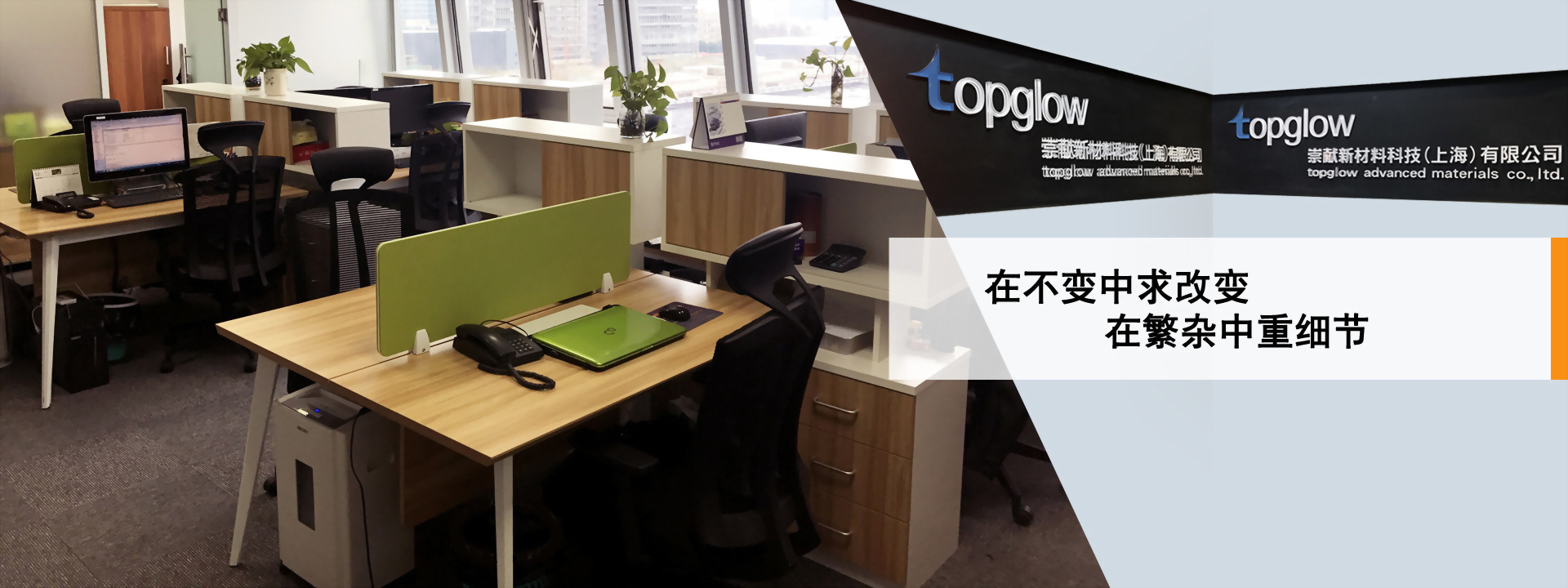 面对快速转型的产业脉动,为提供客户更多元化的专业服务,协助客户共同开发及改善制程提升竞争力,并致力使资源整合,发挥综效,提升竞争优势,跨越更多应用材料领域,设立「崇献新材料科技(上海)有限公司」,为topglow未来的发展,奠定宽广的基础。